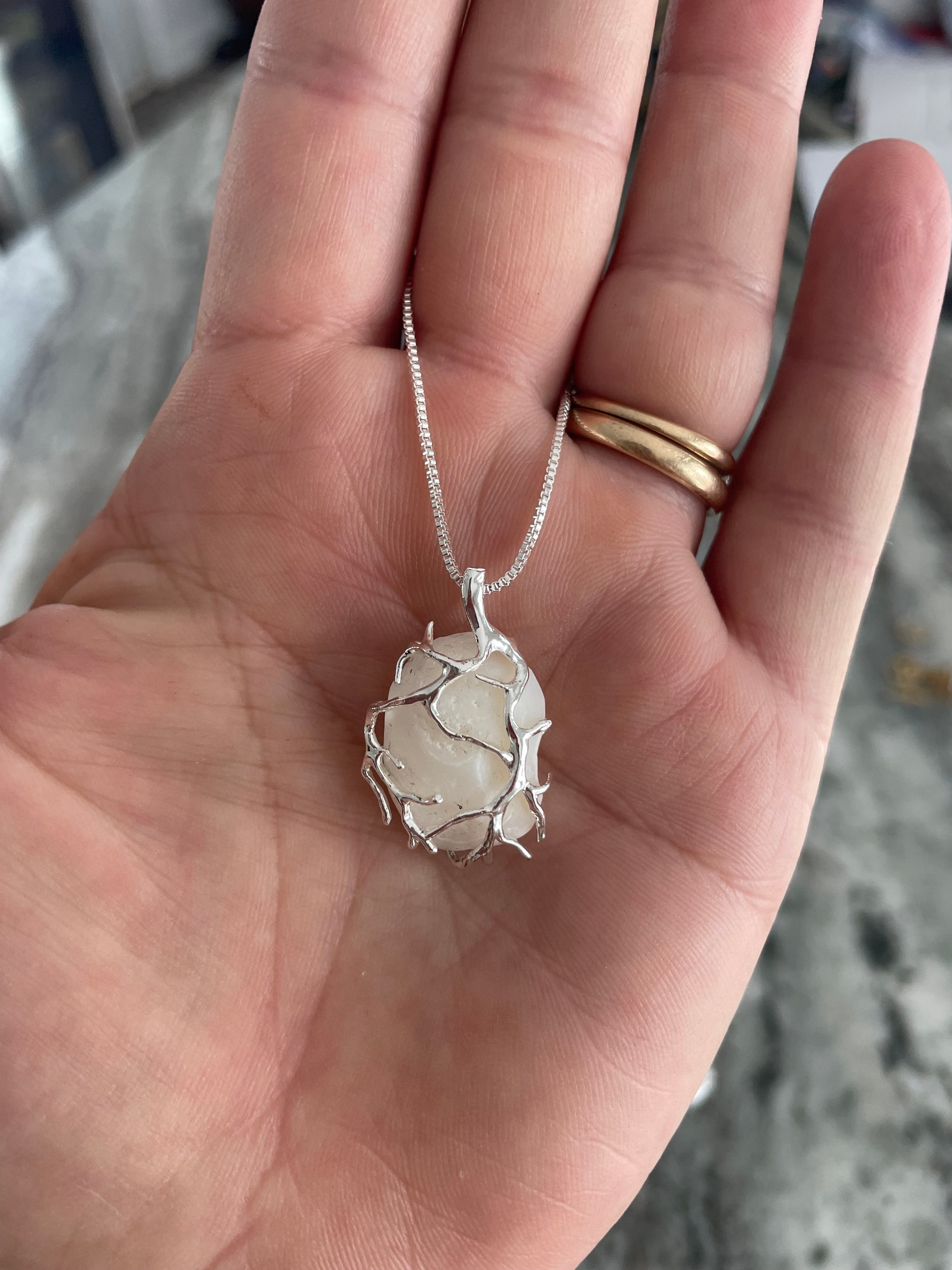 Lake Erie Lucky Stone Necklace – Sterling Silver Chain with Silver Wire Wrapped Lucky Stone