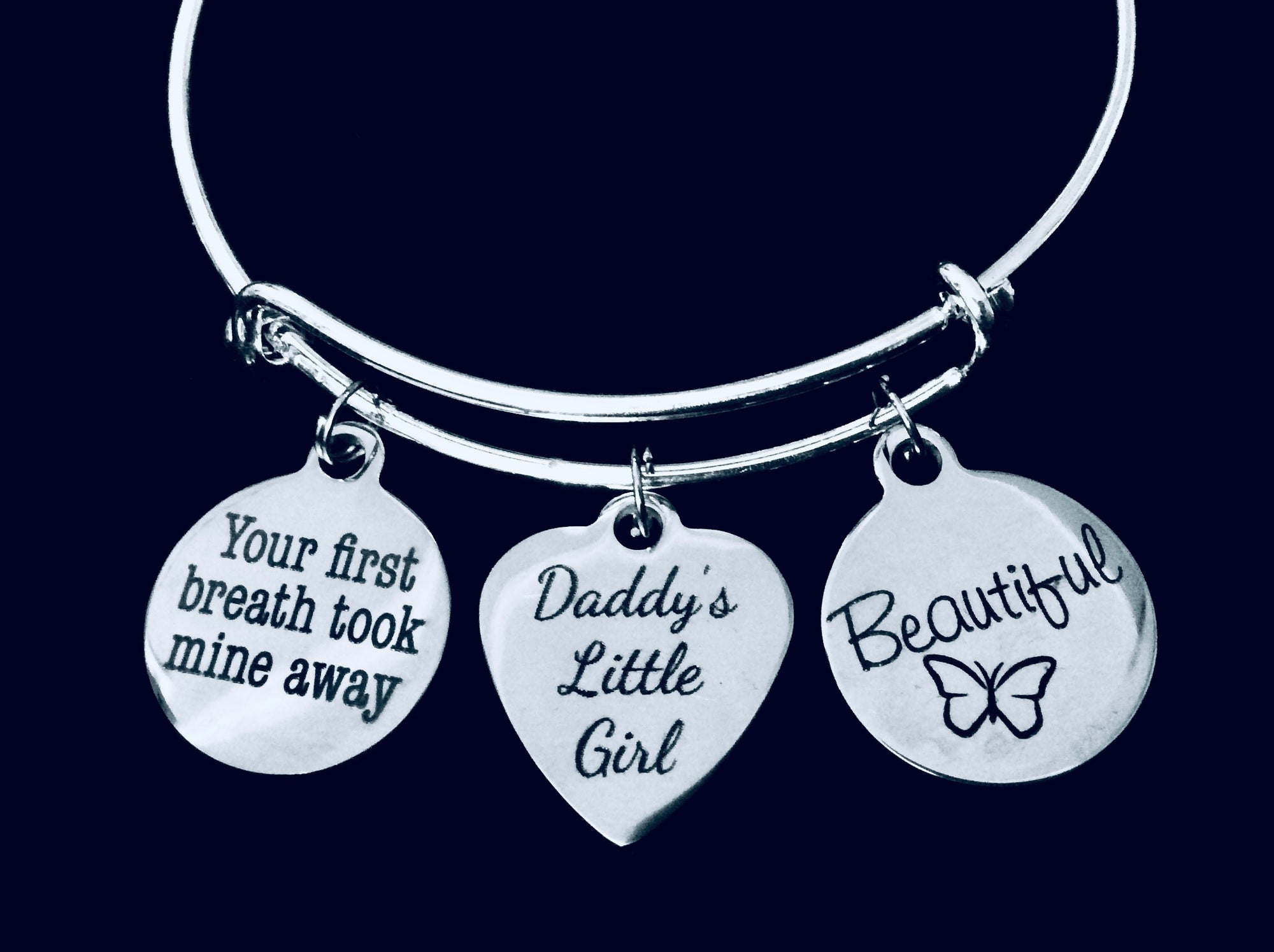 Beautiful Daddy's Little Girl Jewelry Adjustable Charm Bracelet Silver Expandable Bangle Daughter Gift Your First Breath Took Mine Away