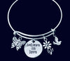 Embrace Love Message charm, Butterfly, Daisy and Bird Charm Bracelet Charms attached securely to a Silver Plated Expandable Bangle Bracelet. Ideal Gift for Anniversaries. Adjustable and Expandable to Fit Most Sizes. Easily Modified for Small or Large Wrists. Meaningful Charm Bracelet; Perfect for gifting to someone special with a personal message included. Crafted with the Finest Quality materials for Durability and Graceful Style. Perfect for collecting and the latest trend in jewelry! Can be worn individually or stacked as fashionable bangles. Stainless Steel Split rings securely attach charms to bangle, preventing any loss. Every piece of jewelry is uniquely customized with symbolic meaning, making it a special addition to any collection.