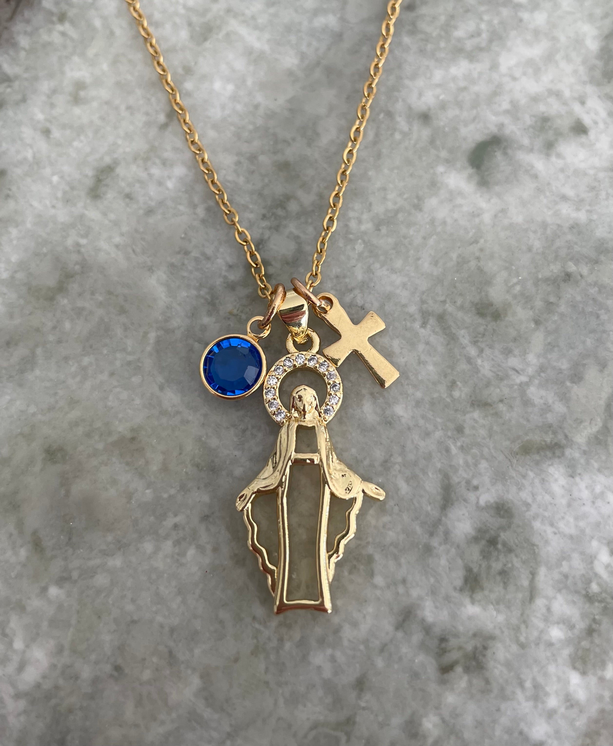 Premium Gold Filled Miraculous Medal Necklace with Birthstone Accent