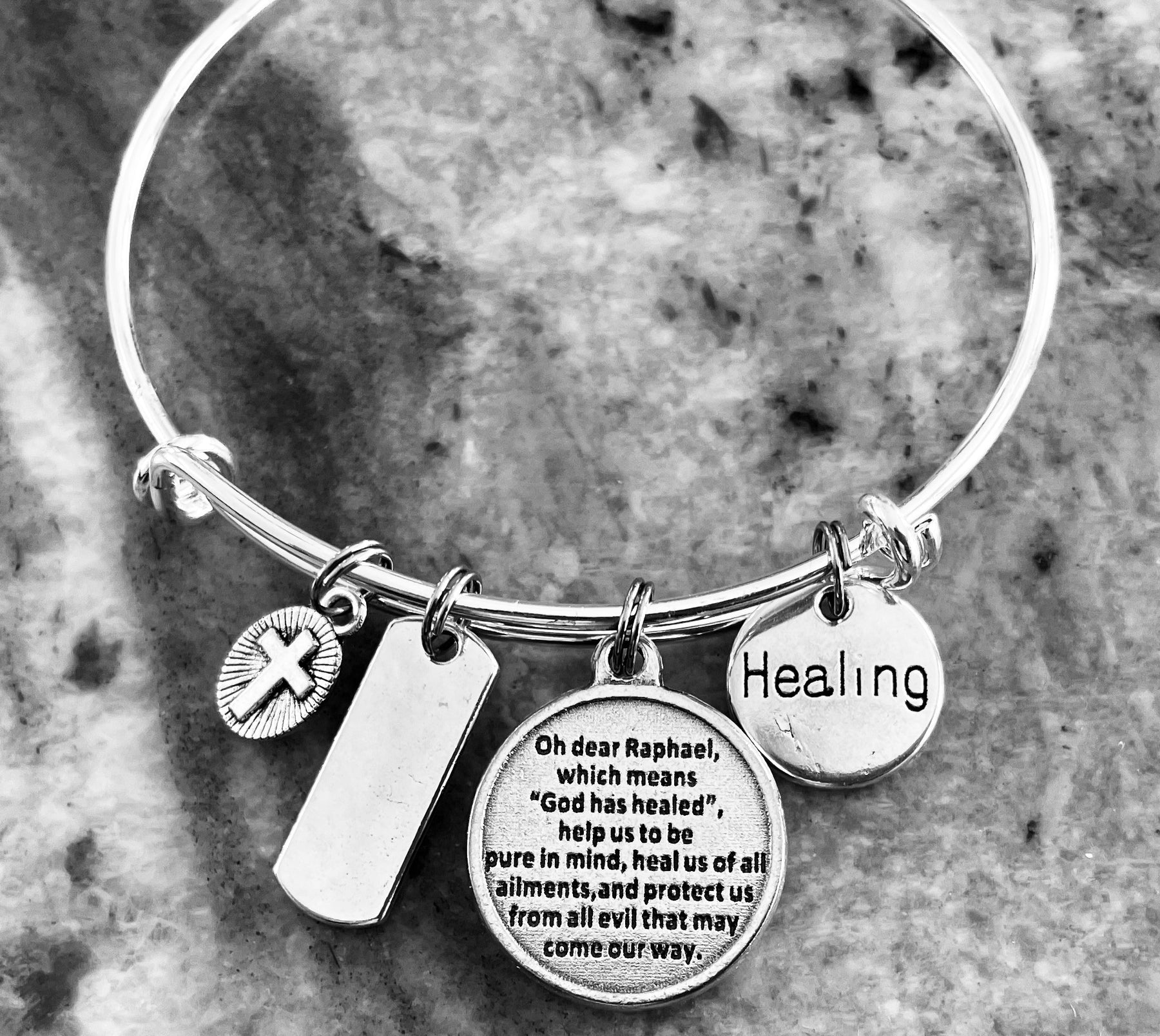 Saint Raphael Healing Bracelet – Prayer on Back - Healing Warrior Charm Bracelet