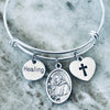 Healing Saint Pio Charm on a Silver Expandable Adjustable Bangle Bracelet Patron Saint of Healing