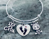 New Baby Girl! Pink Crystal Baby feet, little girl and Quote charm on a Silver plated Expandable Adjustable bangle.