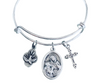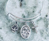 Experience the powerful aid of Saint Anne, known as the patron saint of mothers, pregnant women, and childless couples. Revered for centuries, she is beloved by many and has been credited with countless miracles. Her feast day is July 26th and she is often celebrated with traditional Italian-made Catholic medals, such as this beautiful vintage-style oval design. Made with exquisite detailing and heavy sterling silver plating, this medal is safely attached to an expandable silver-plated bracelet. Designed to fit most wrists, it is a perfect addition to any collection and a trendy accessory for today's fashion. With durable and sturdy components, including new stainless steel split rings, you can be assured that your charms will always remain secure. This meaningful charm bracelet makes a thoughtful and personalized gift that can be sent directly to your recipient with a personal message included. Thanks to my original designs, you can have a piece of jewelry that is truly unique and filled with symbolic meaning.