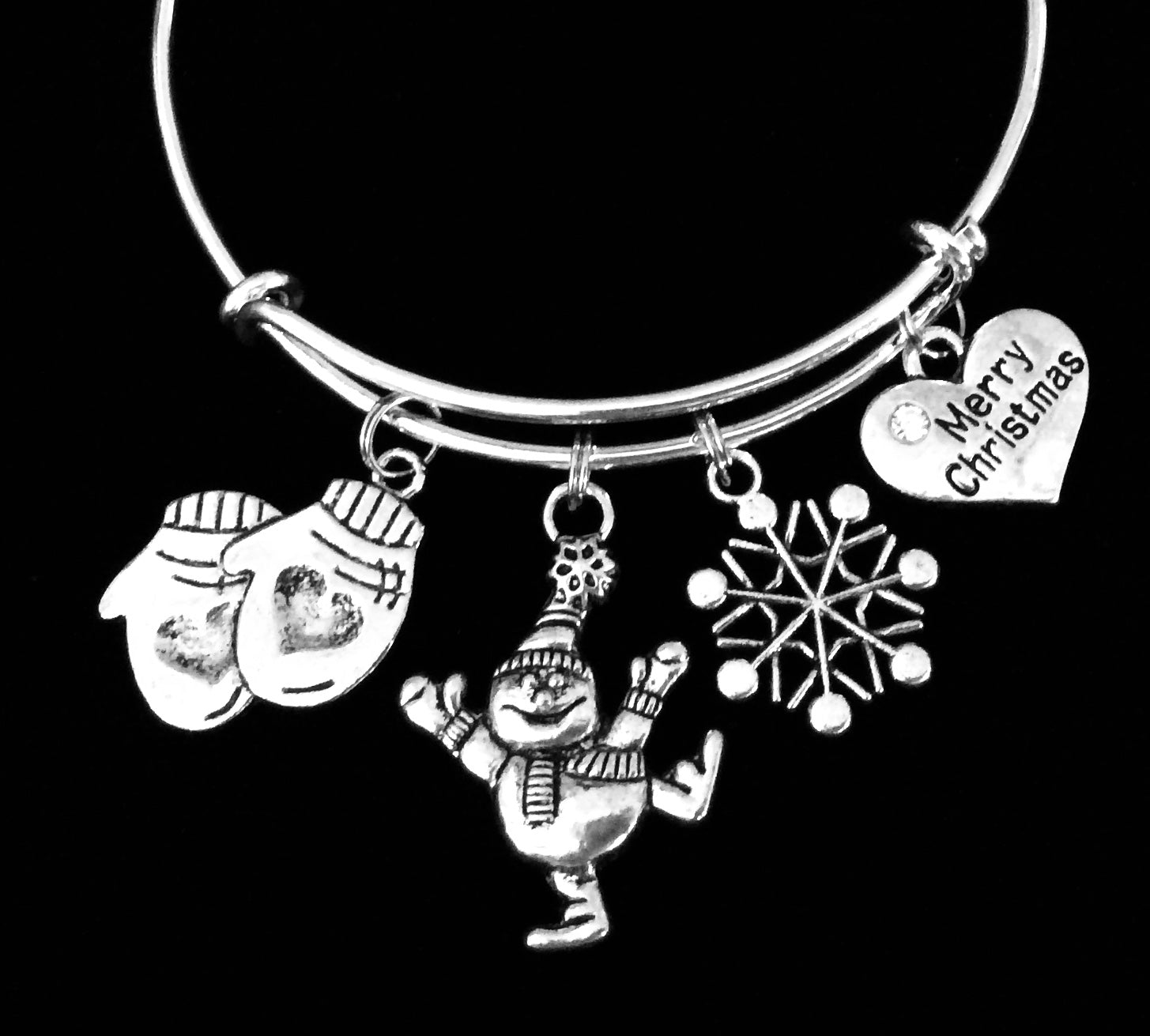 Snowman Merry Christmas Snowflake Mittens Adjustable Bracelet Expandable Charm Bracelet Christmas Bangle Gift Trendy Christmas Jewelry